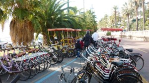 The NoloBici rent-a-bike stall near the old San Remo train station