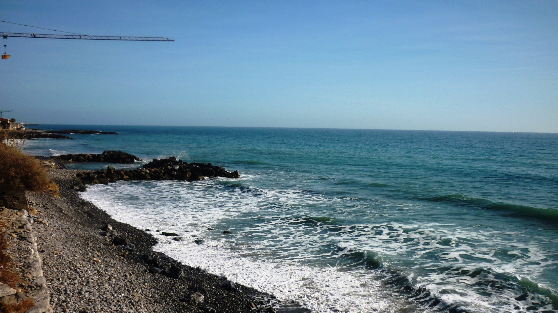 The beautiful Mediterranean Sea viewed from the cycling path near Bussana