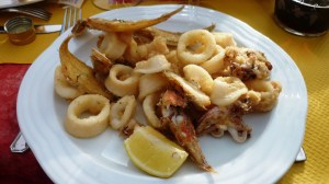 A delicious Ligurian fritto misto on the beach in San Lorenzo al Mare