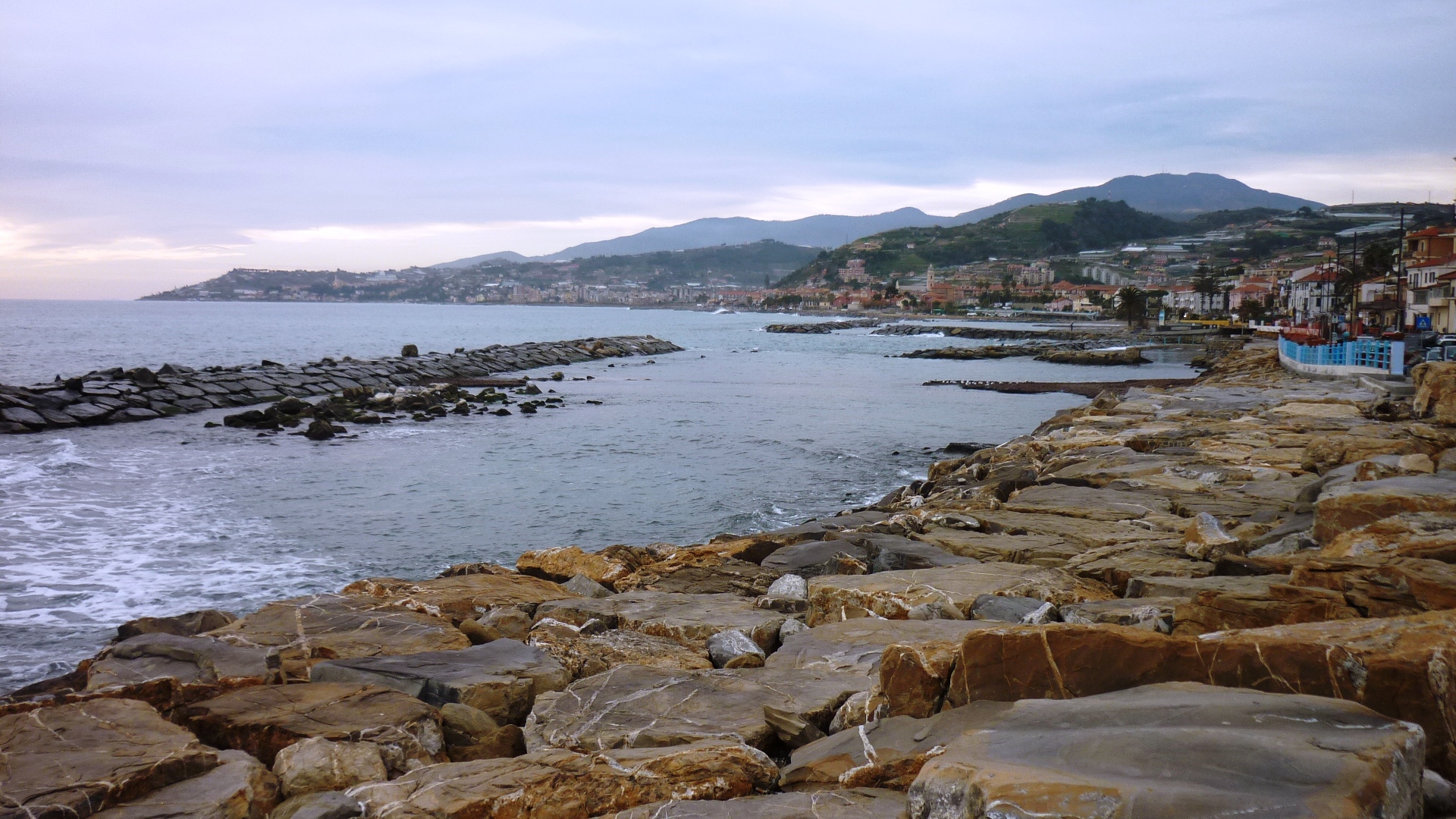 The cycling trail is a nice way of converting the old railway track that ran along the coastline from San Remo to Imperia, and that was replaced about 15 years ago by the new underground railway line currently in use. Instead of having it turned into a derelict strip full of debris and graffiti, the local government invested EU funds into turning into a very wide cycling trail, away from the traffic and affording great views of the little-known but scenic Ligurian coastline.