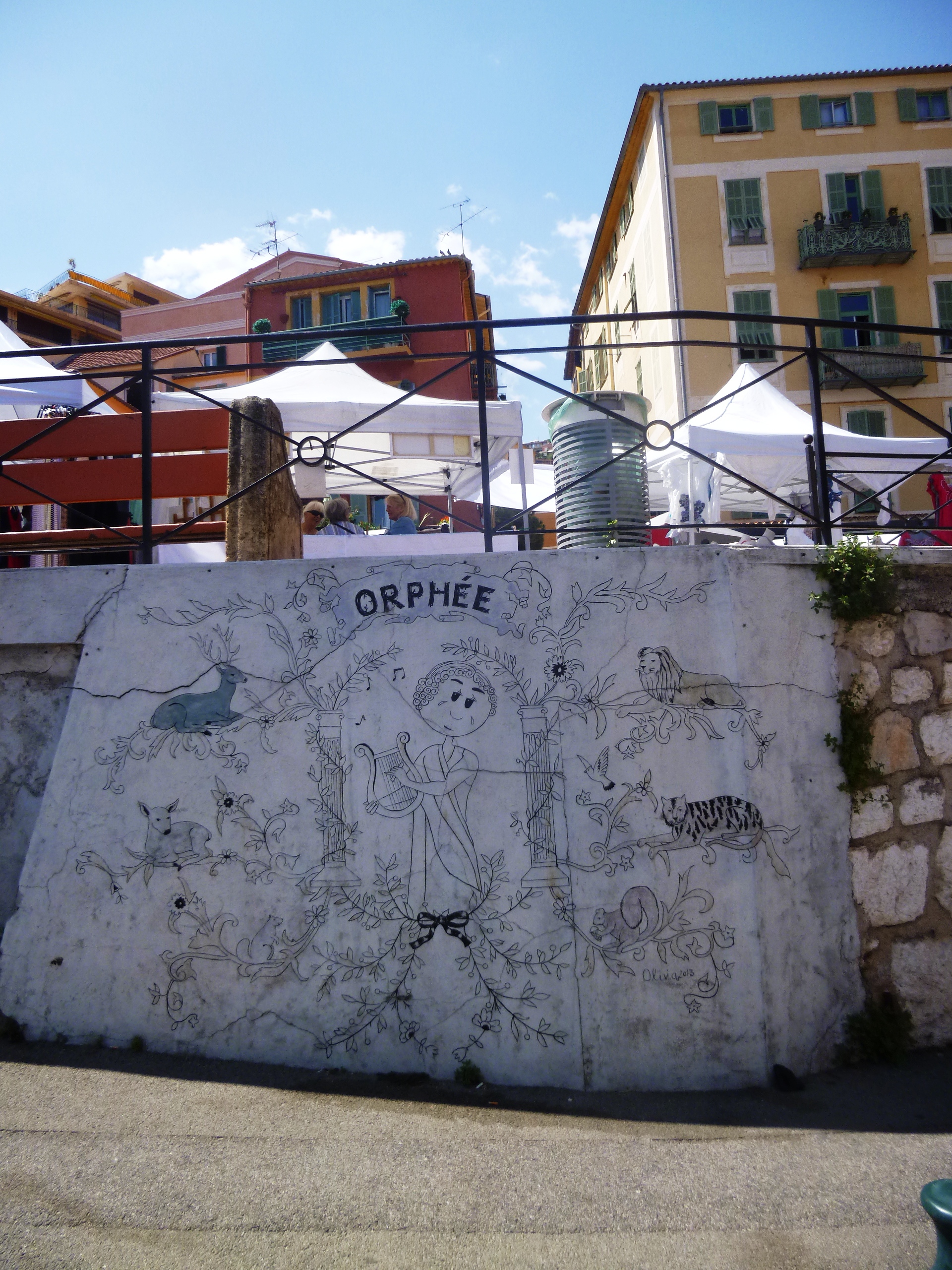 Cocteau's Orpheus mural just across the road from the chapel