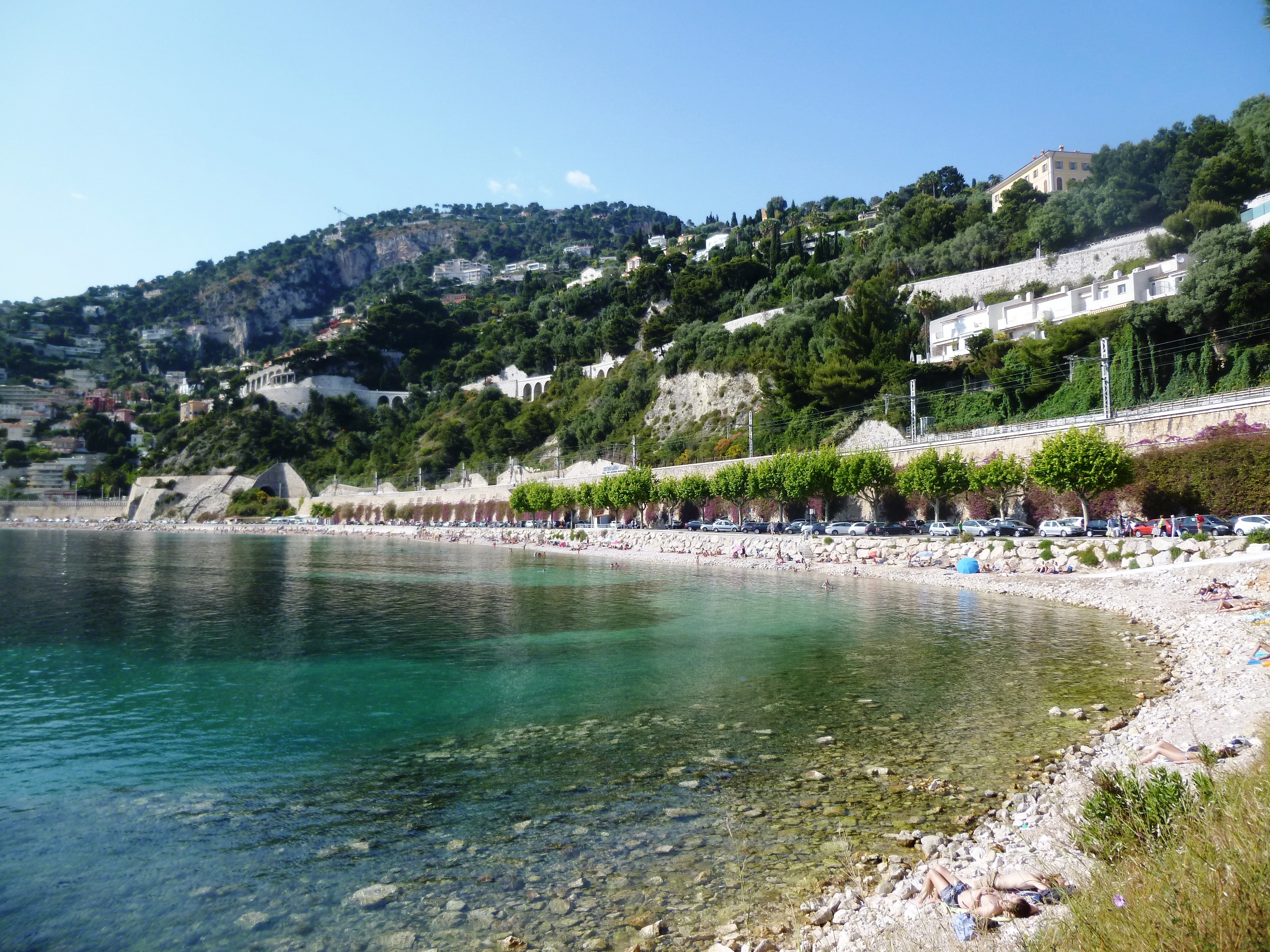 b. East along the coast in the direction of Beaulieu and Cap Ferrat: the beautiful beach at the plage des Marinières