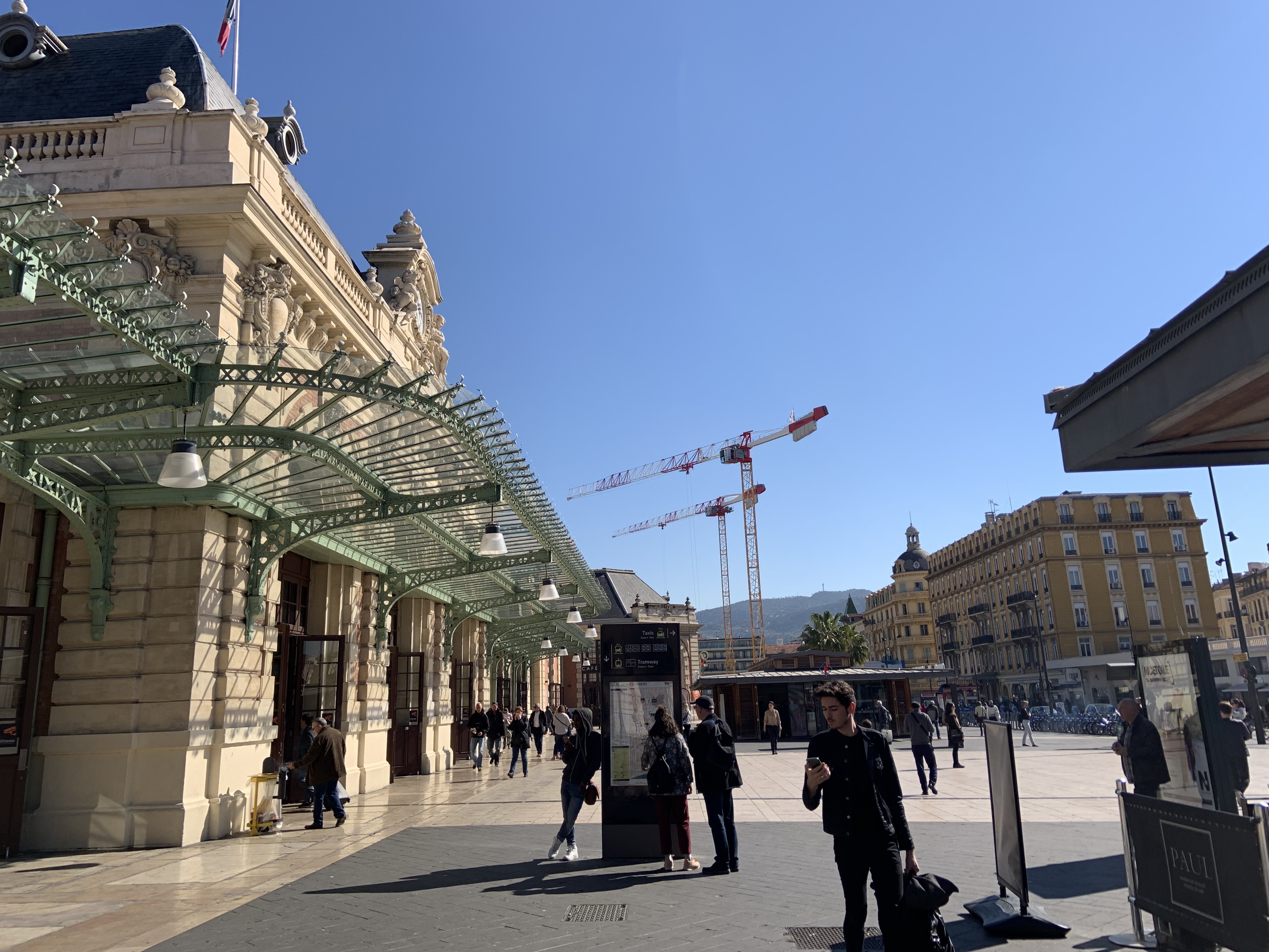 Hardly the most exotic or beautiful part of the French Riviera but probably one of the places that most visitors transit through at least once during their stay as the main transport hub, the Gustave Eiffel-designed Nice Ville train station is just about getting to the end of an extensive renovation process. Granted, the neighbourhood still isn’t the safest (which is why hotels are cheaper than elsewhere in Nice) but at least it’s improved a lot since they created this pedestrian square in front (as opposed to the hell-hole it was 15 years ago during my hotel-owning days). Soon there’ll also be a new shopping centre and hotel where those cranes currently are, so should make things improve even more, whilst there are now even escalators and lifts (at long last!) to get to the platforms 🙂 To find out why this station is so useful to transit through, check out my practical guide to getting around efficiently on the French Riviera!